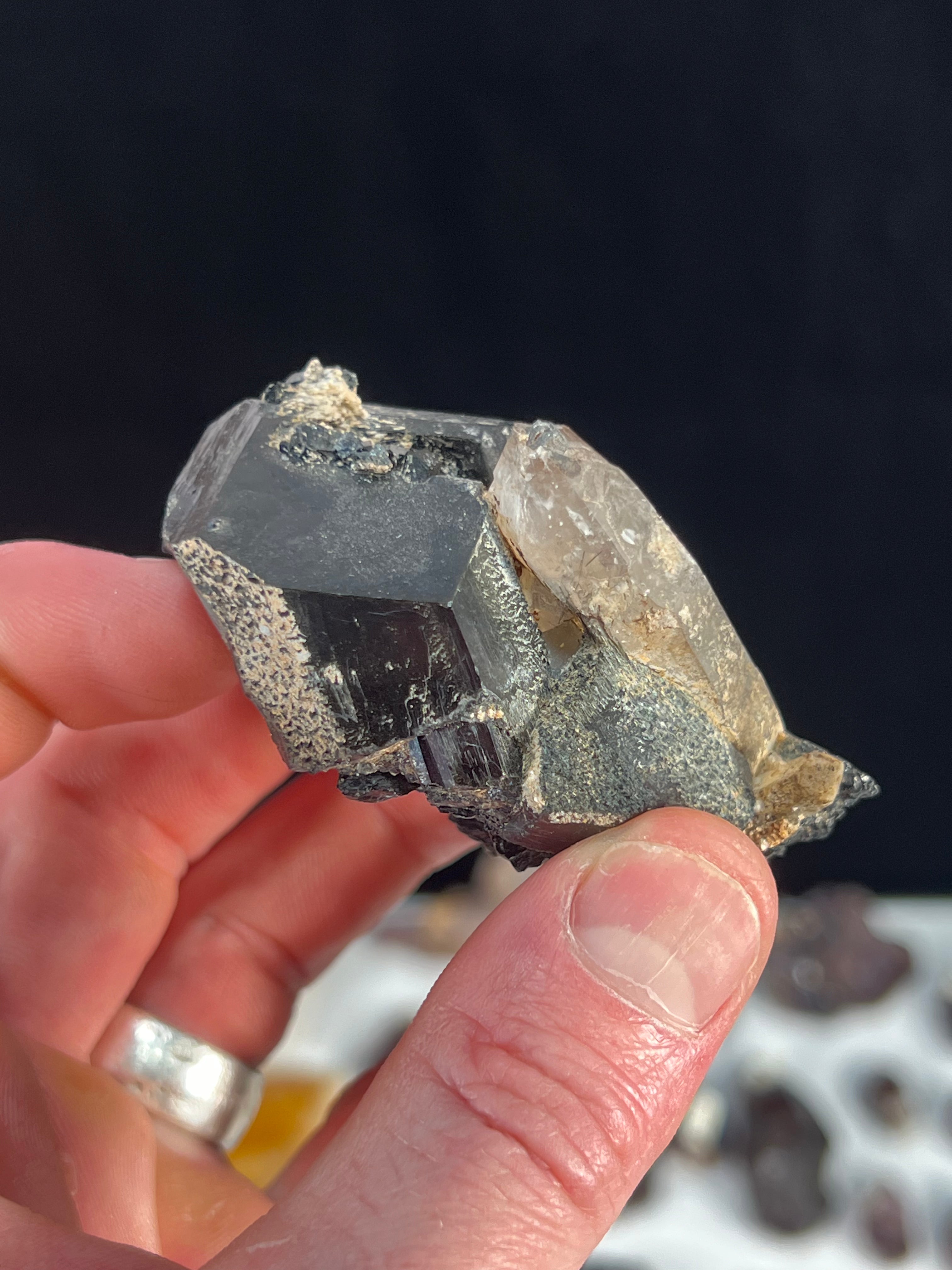 Black tourmaline with smoky Quartz