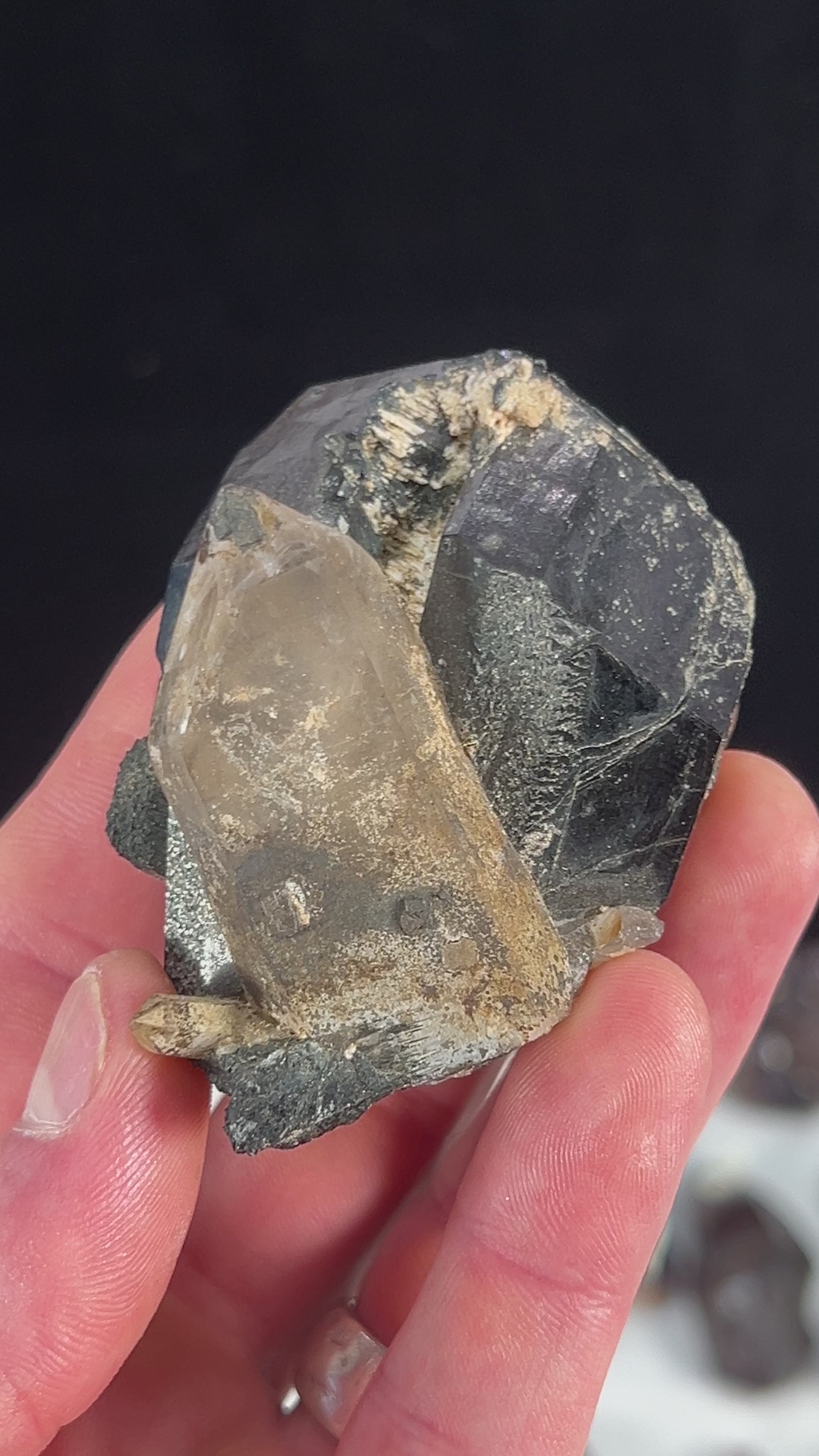 A black tourmaline and smoky Quartz combination crystal from the Erongo plateau in Namibia
