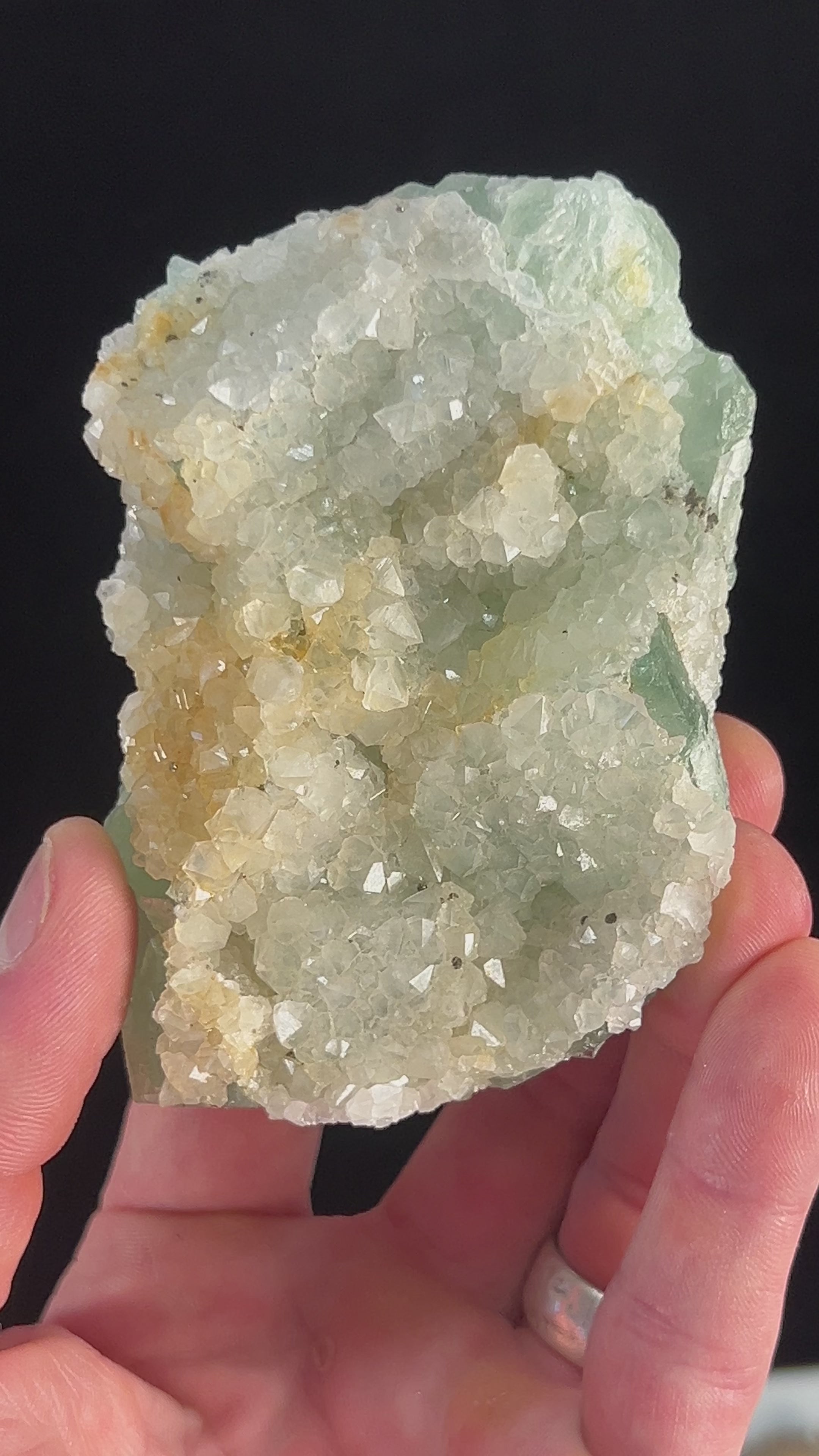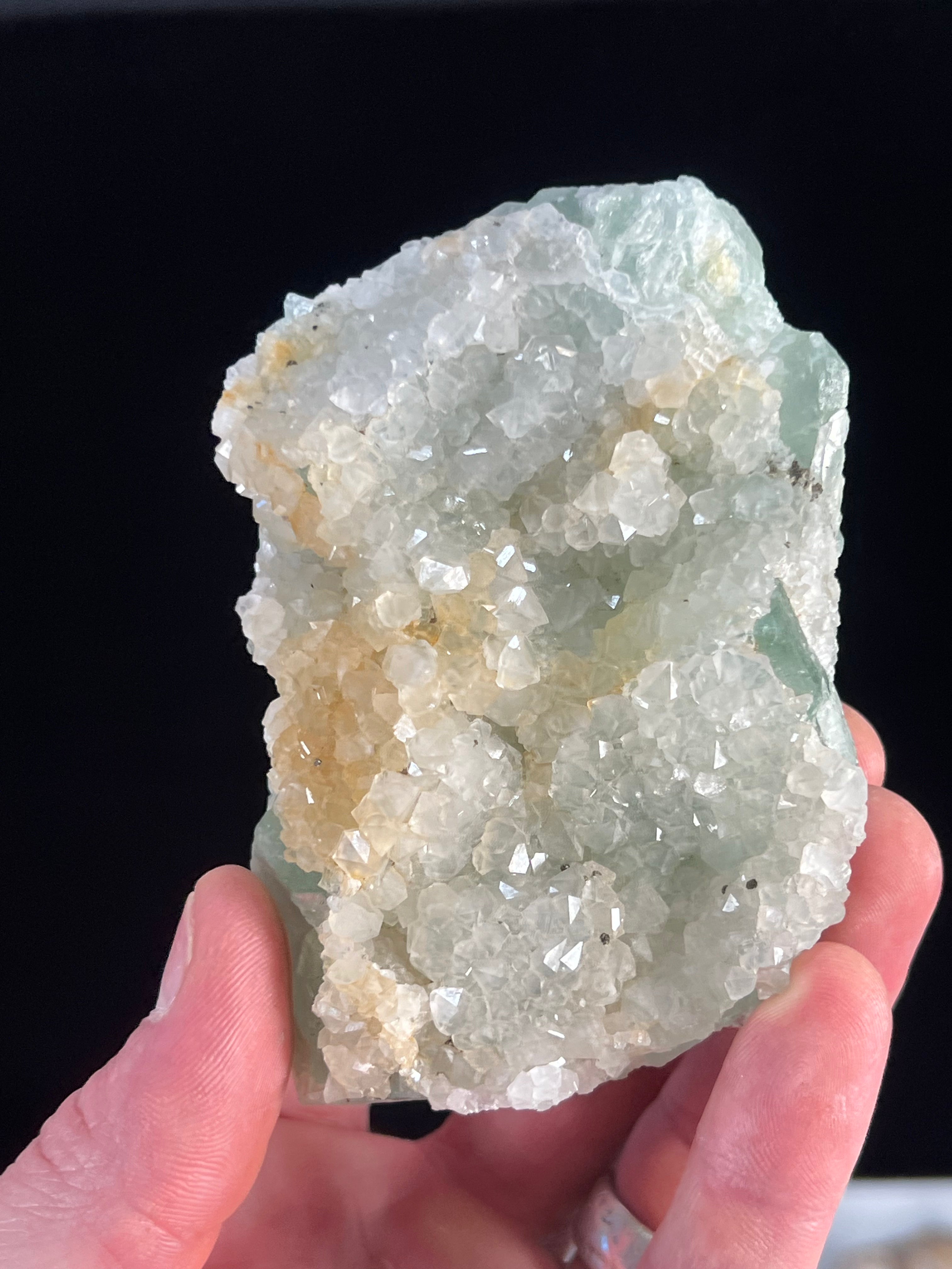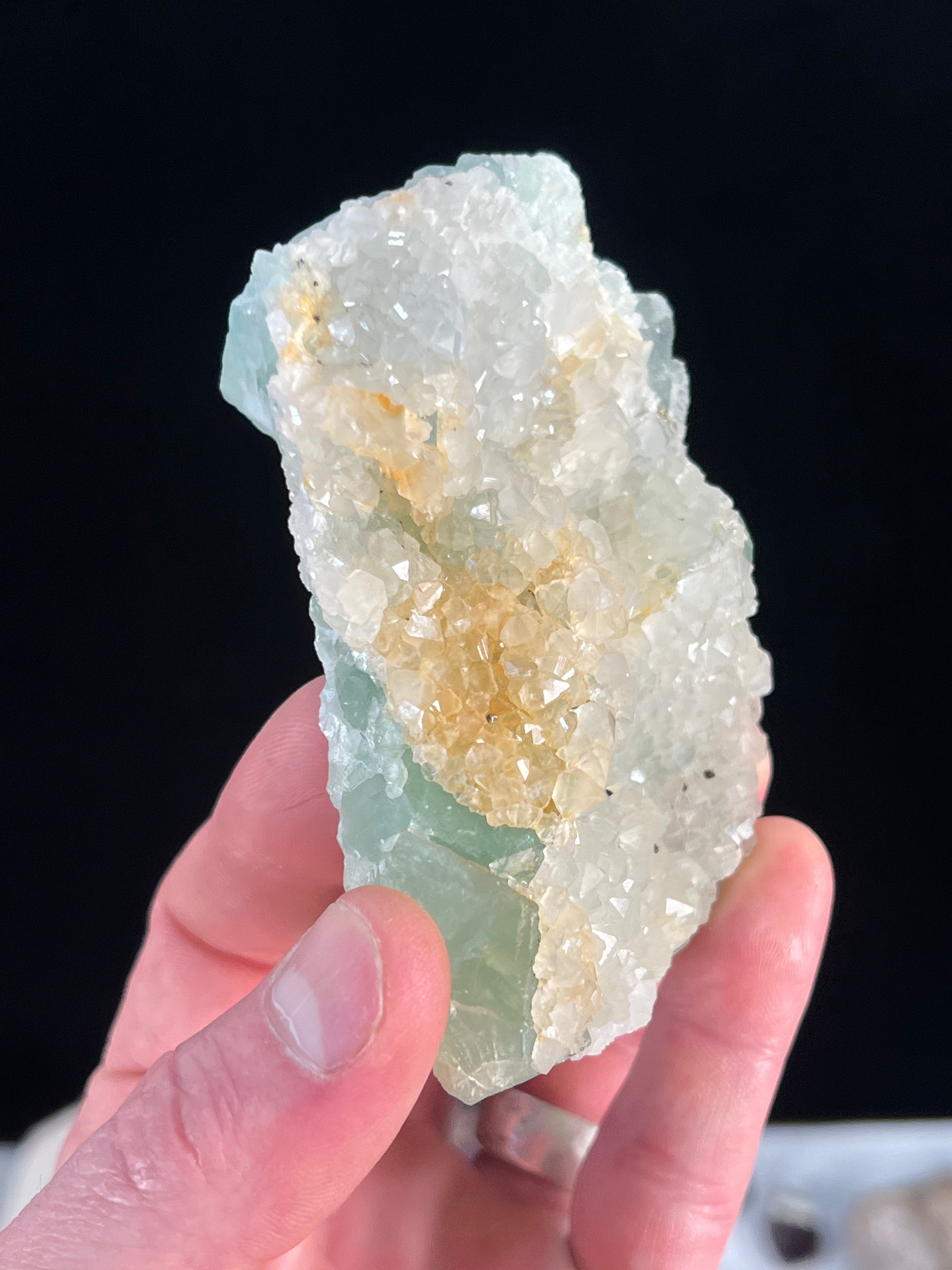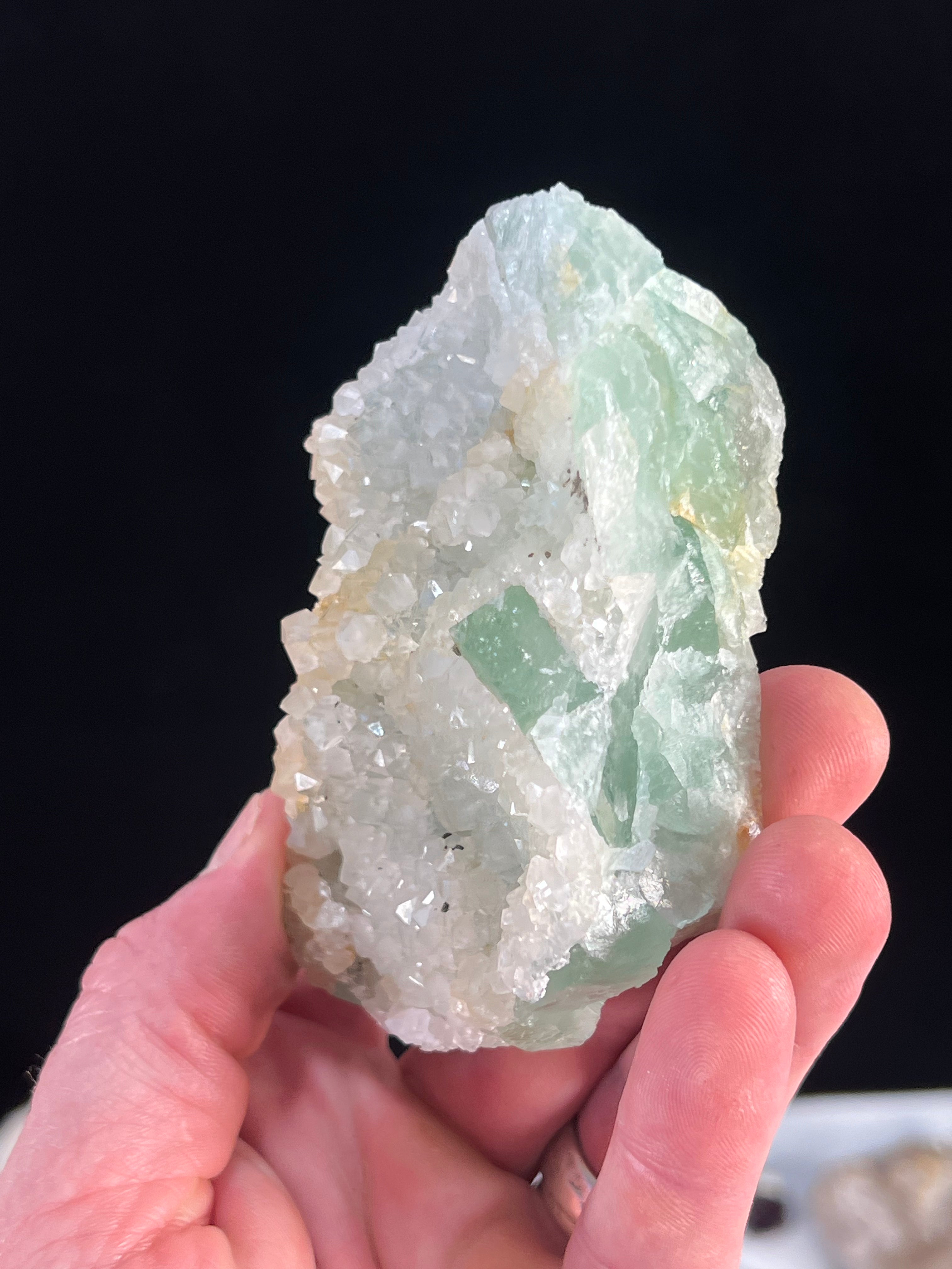 Amazing blue colored fluorite with nice druzy Quartz covering the top. Pyrite crystals in back side. From el hammem morrocco.