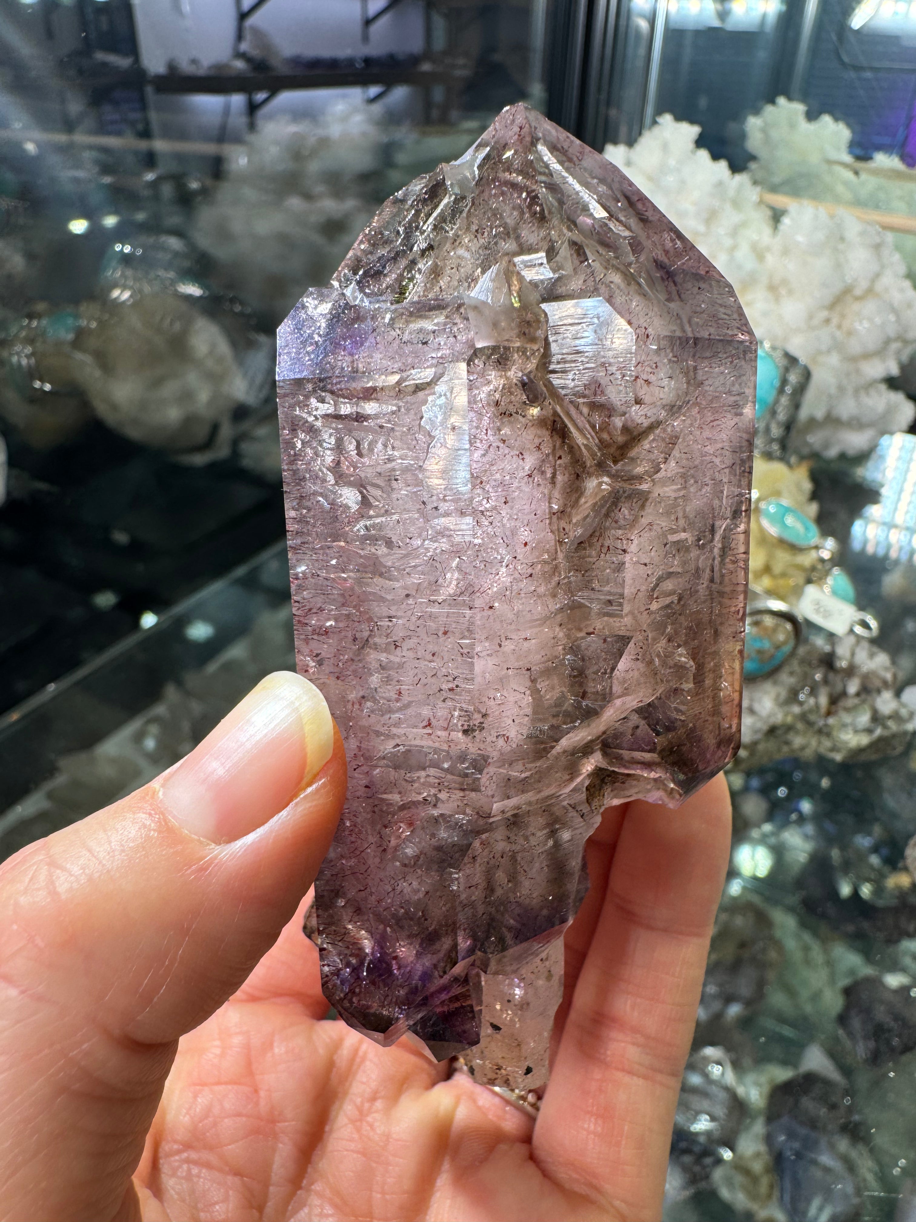Natural and one of a kind. Amethyst crystal from the Chibiku mine in Zimbabwe. This one is exceptional quality. Great clarity, color and incredible growth structure.