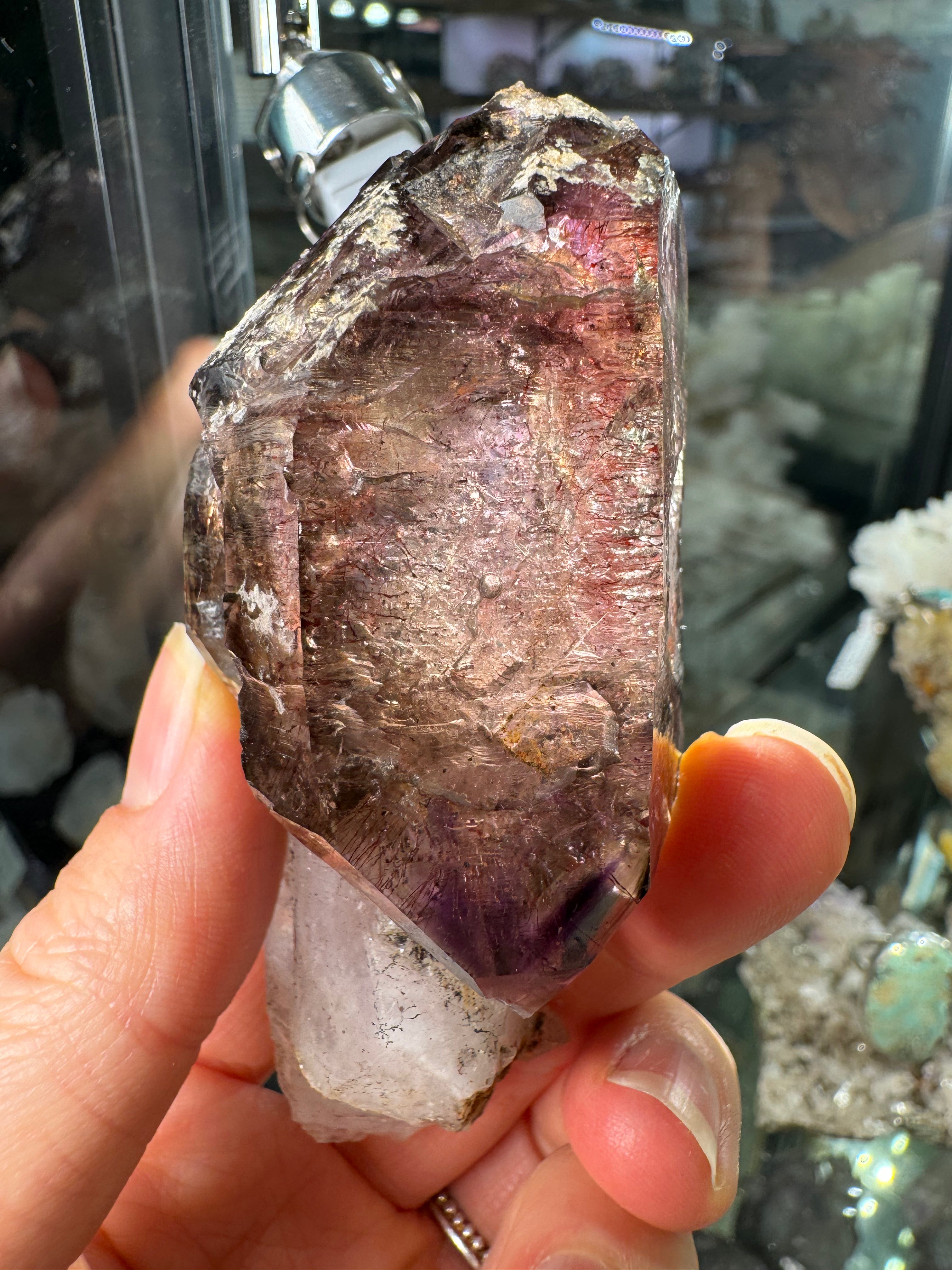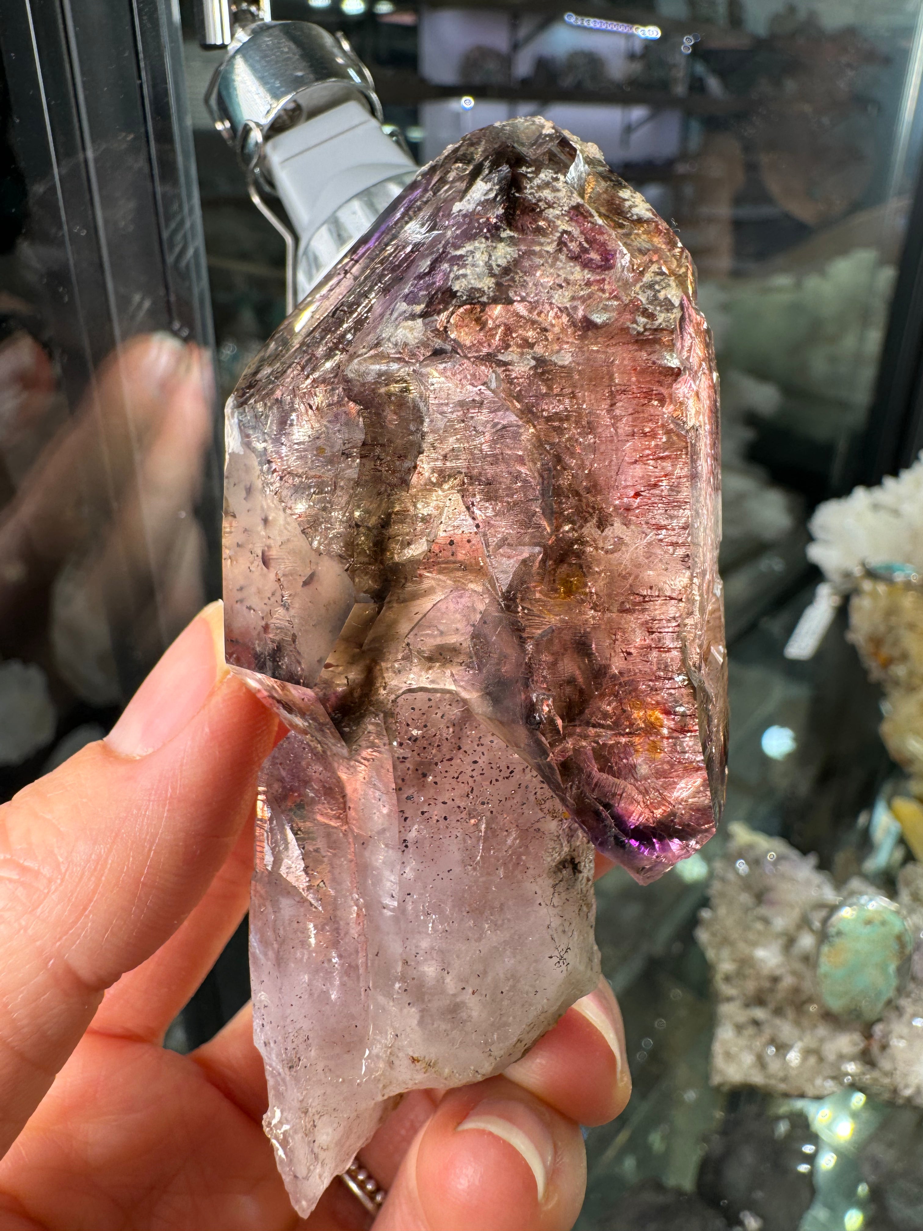 Natural and one of a kind. Amethyst crystal with a stationary Enhydro bubble from the Chibiku mine in Zimbabwe.