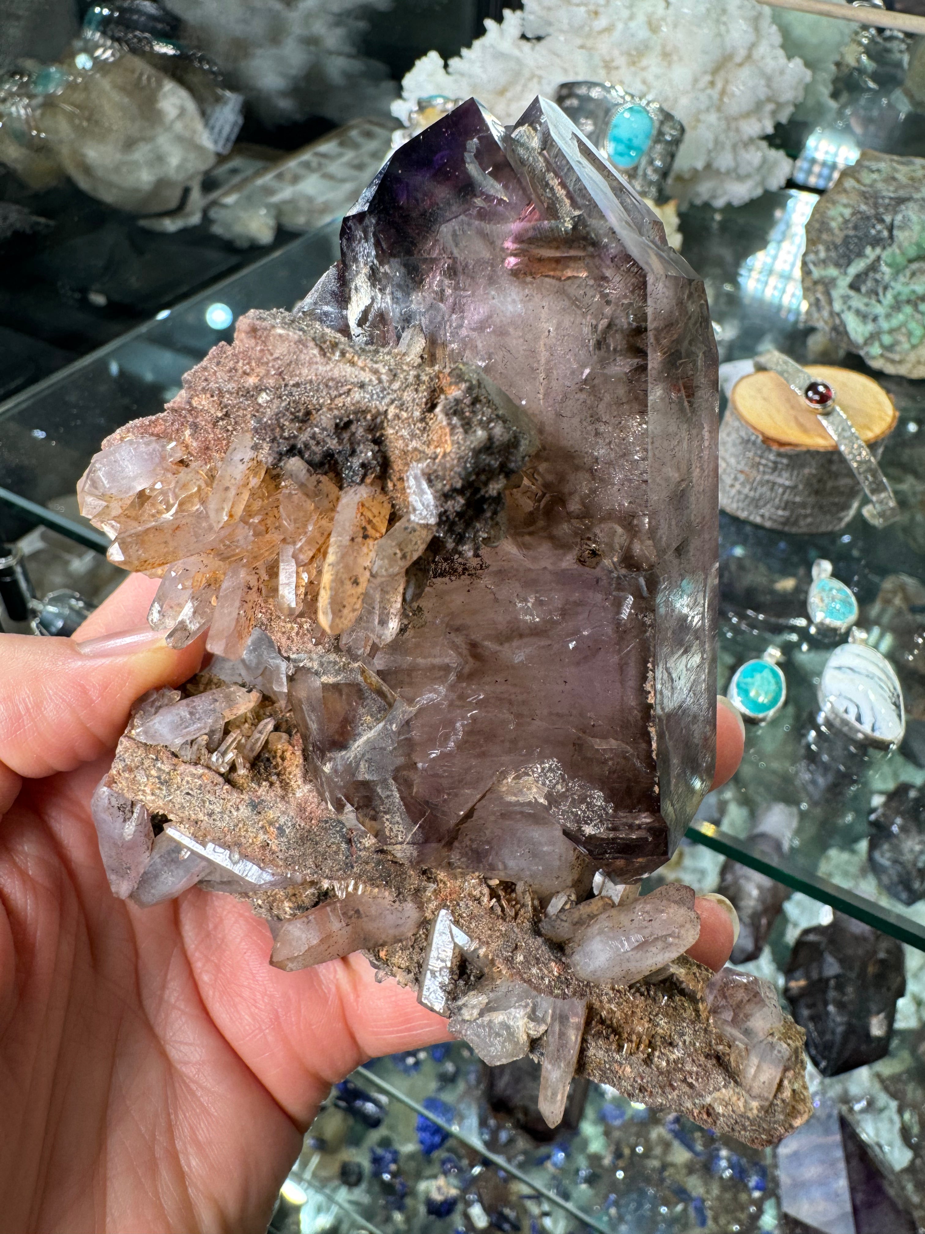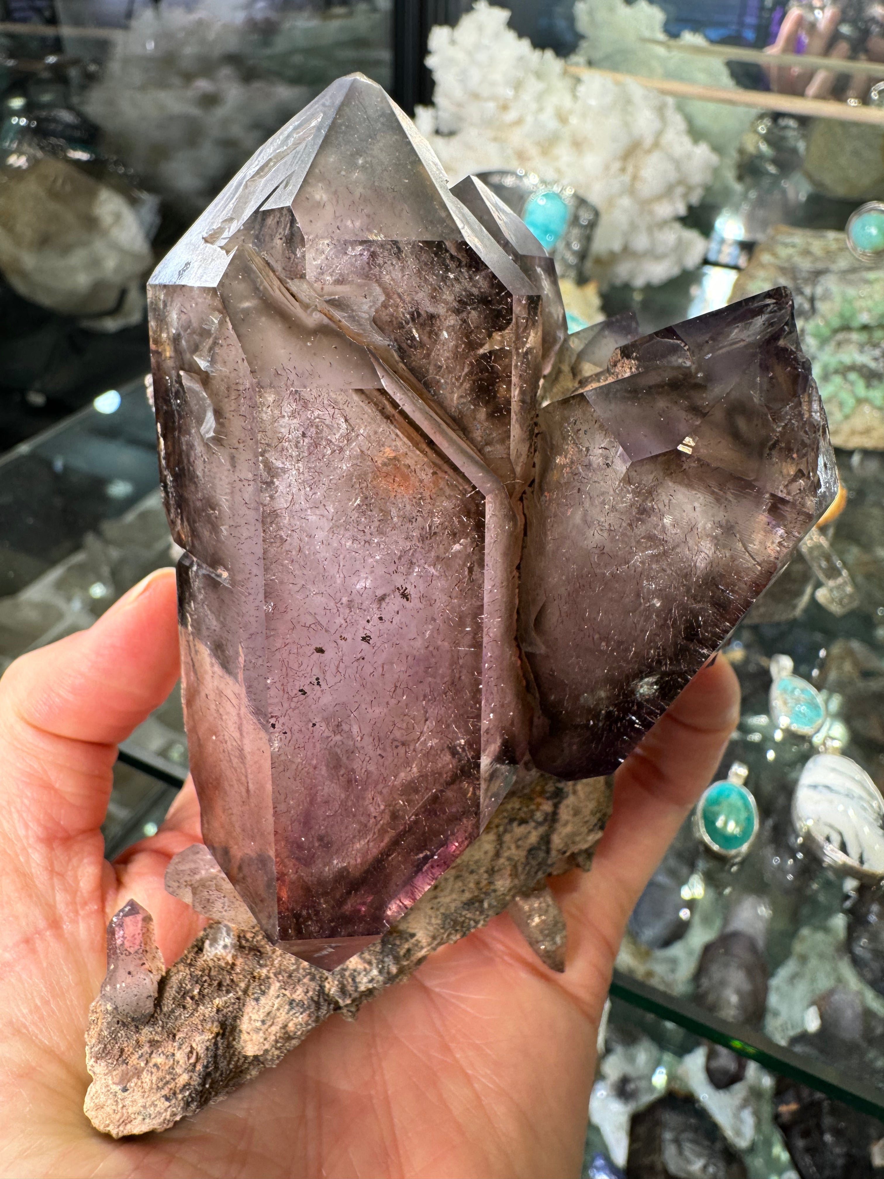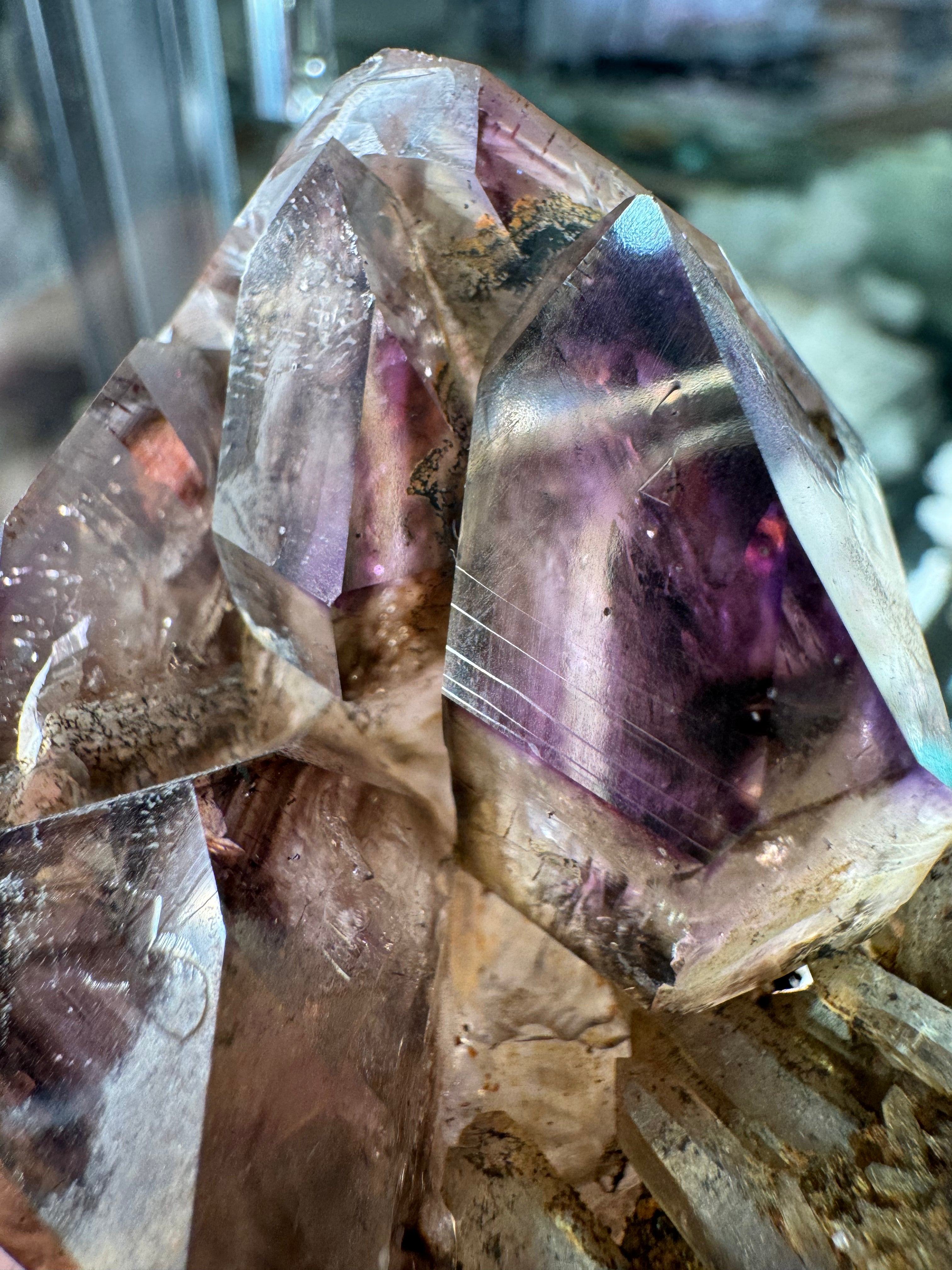 Natural and one of a kind. Amethyst crystal from the Chibiku mine in Zimbabwe. Clusters from this mine are very rare and this one is of exceptional quality. It self displays beautifully and notice the record keepers in the close up photo!